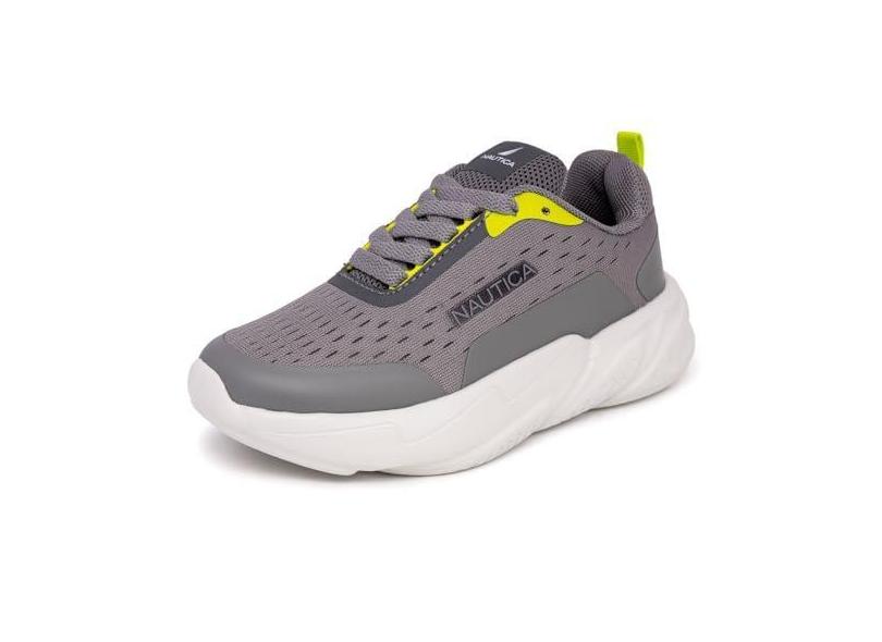 Nautica Tênis infantil com cadarço para meninos e meninas – Tênis de caminhada com amortecimento aprimorado e tecnologia de salto grosso, para corrida atlética (criança pequena/criança grande), Cinza