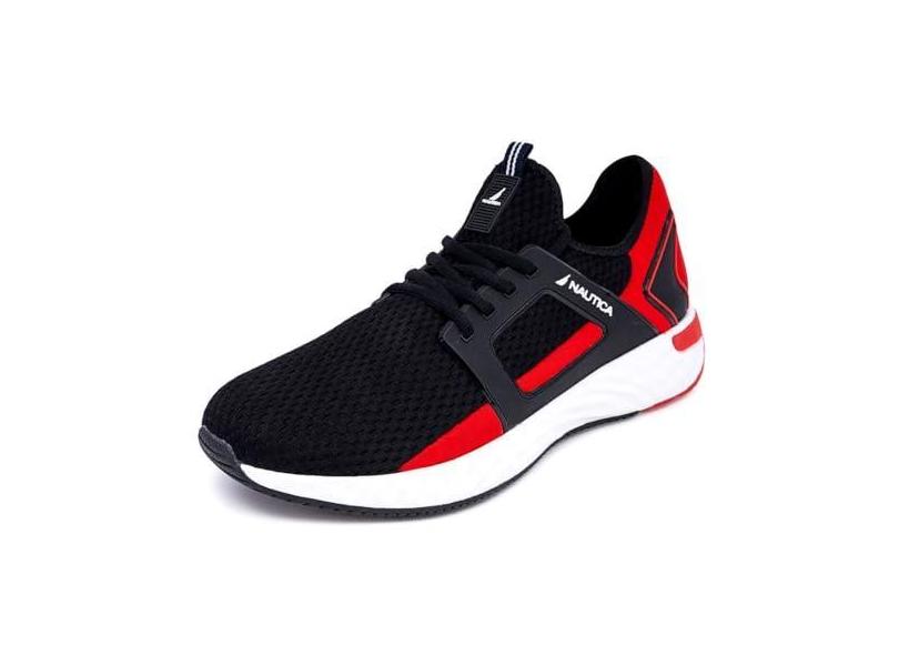 Nautica Tênis masculino: Atlético, confortável, casual com cadarço moderno tênis de caminhada, Preto e vermelho Aron, 42
