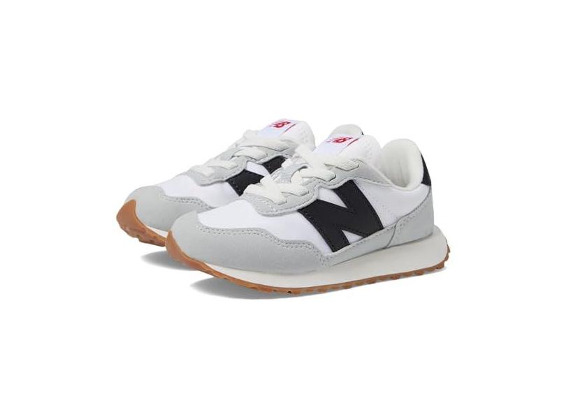 New Balance Tênis infantil 237 V1 com cadarço, Branco/preto, 15