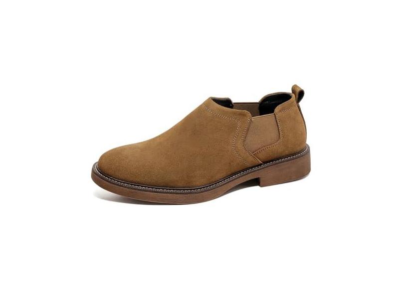 Novo tênis masculino de camurça de cano baixo sem cadarço e respirável de couro legítimo, Caqui, 37
