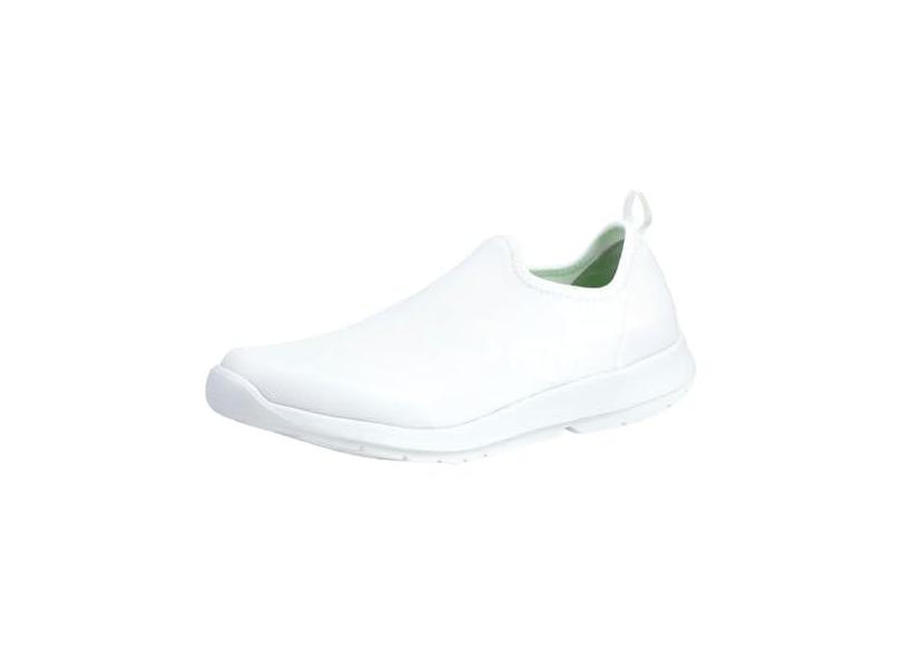 OOFOS Tênis esportivo baixo feminino OOmg – Calçado leve de recuperação – reduz o estresse nos pés, articulações e costas – Lavável na máquina, Branco, 38
