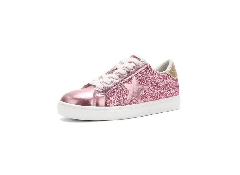 PARTY Tênis feminino Fashion Star com cadarço, cano baixo, confortável, acolchoado, Glitter rosa, 35