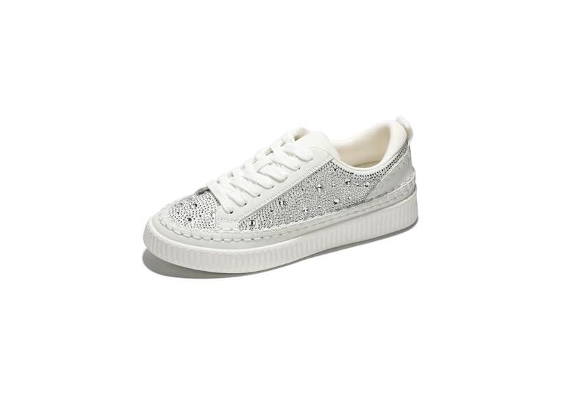 Project Cloud Tênis feminino com fecho de cadarço e sola de borracha antiderrapante (Lona), Strass branco, 37