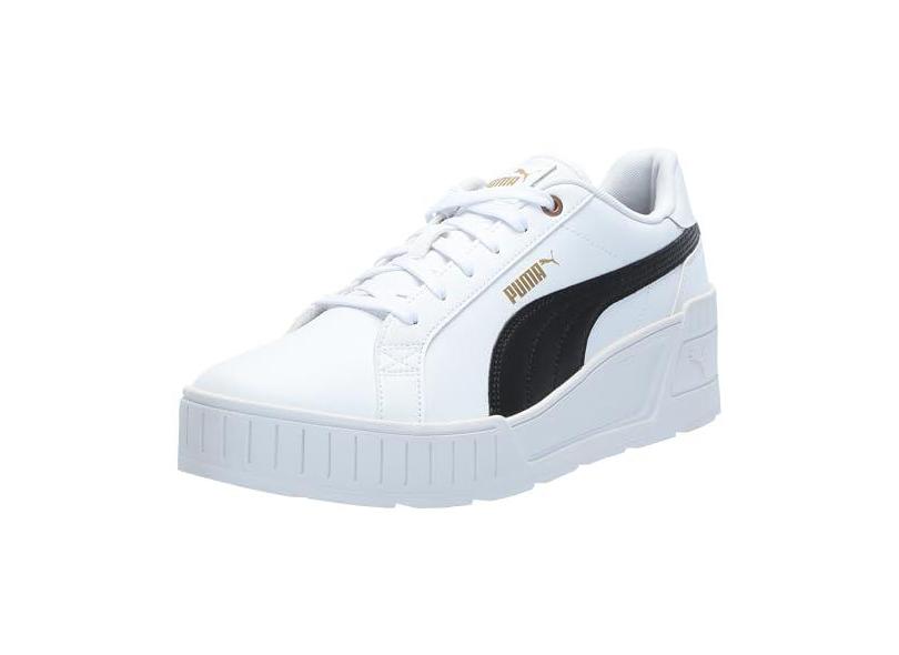 O menor preço encontrado no Brasil para PUMA Tênis feminino Karmen Wedge, Puma branco-puma preto e dourado, 40 atualmente é R$ 492,57.