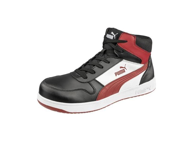 PUMA Tênis industrial masculino Frontcourt Preto/Branco/Vermelho Mid Eh, Preto/Branco/Vermelho Eh, 38