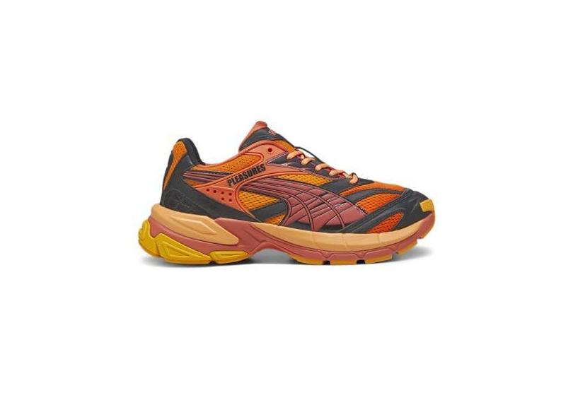 O menor preço encontrado no Brasil para PUMA Tênis masculino Velophasis Layers X Pleasures com cadarço casual - preto, laranja, Preto, laranja, 39 atualmente é R$ 721,51.