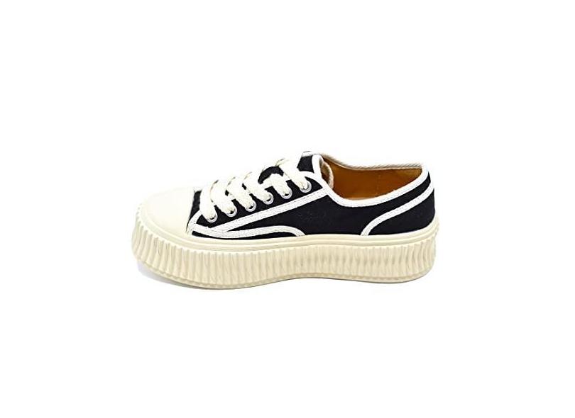Rebamima Tênis feminino plataforma com cadarço grosso Fashione lona quatro estações, Preto, 37