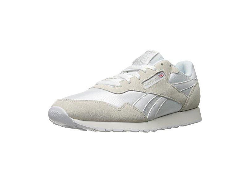 Reebok Tênis masculino clássico de nylon, Branco/Aço, 37