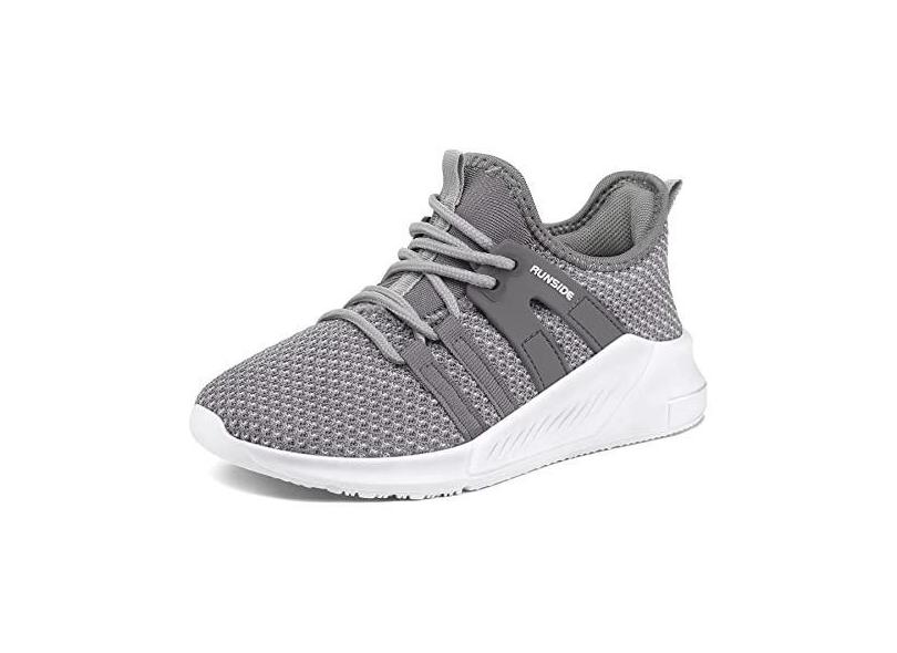 RUNSIDE Meninas Tênis Crianças Leve Respirável Tênis Rendas-Up Tênis de Corrida Atlético para Criança/Criança Pequena/Criança Grande Cinza