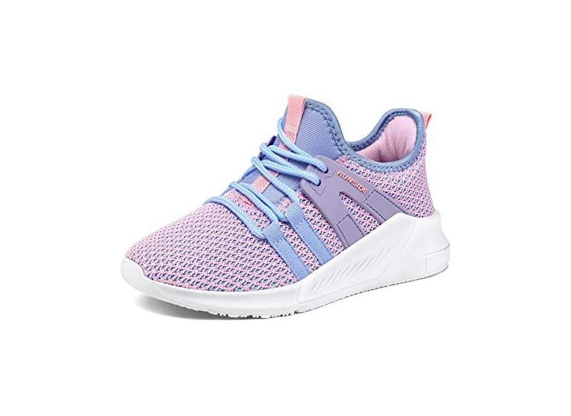 RUNSIDE Meninas Tênis Crianças Leve Respirável Tênis Rendas-Up Tênis de Corrida Atlético para Criança/Criança Pequena/Criança Grande Roxo