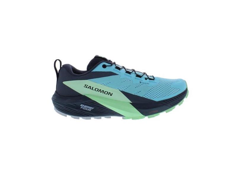 Salomon SENSE RIDE 5 Tênis de corrida feminino para trilha, Brilho azul/cinza verde/azul tinta indiana/azul azul, 36