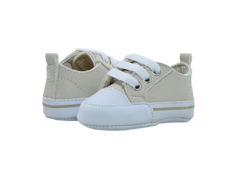 Sapatinho de Bebê Bicho de Pé - Sapatênis Masculino c/ ilhós e Atacador - Sintético/Tecido - Bege