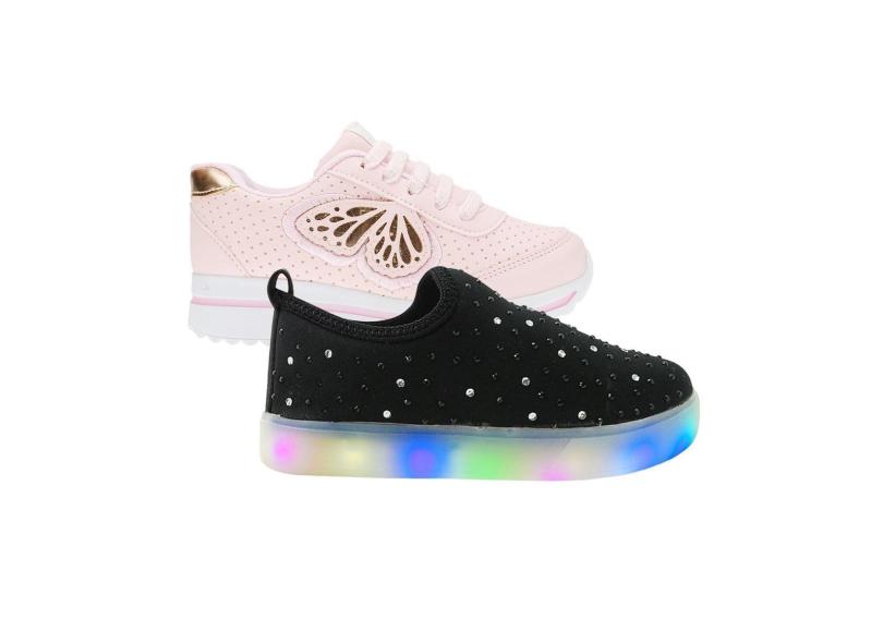 Sapato Tenis Infantil Feminino - KIT 2 PARES Tam 24 ao 34-Feminino