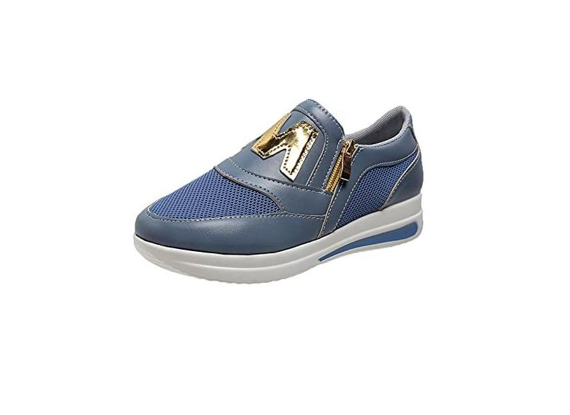Sapatos confortáveis femininos lavados atléticos confortáveis casuais femininos sapatos de caminhada sapatos de lona para mulheres, Azul claro - -, 36