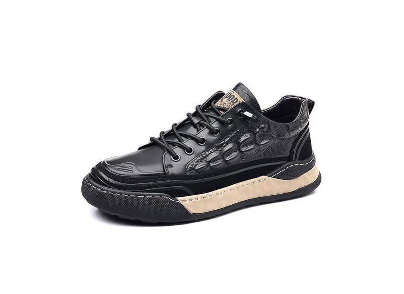 Sapatos masculinos casuais de couro com sola grossa para aumento de altura para skate esportivo, Preto, 38