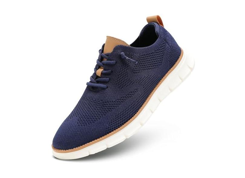 Sapatos sociais casuais masculinos moda tênis de caminhada malha oxford trabalho leve sola macia, Azul escuro, 12