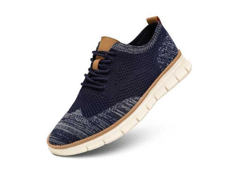 Sapatos sociais casuais masculinos moda tênis de caminhada malha oxford trabalho leve sola macia, Azul escuro, 8.5