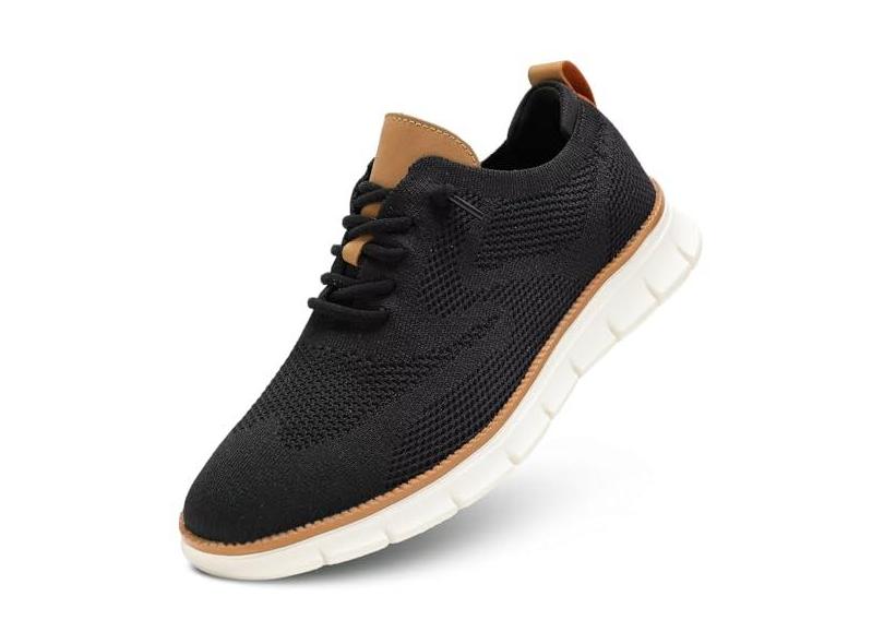 Sapatos sociais casuais masculinos moda tênis de caminhada malha oxford trabalho leve sola macia, Preto, 10