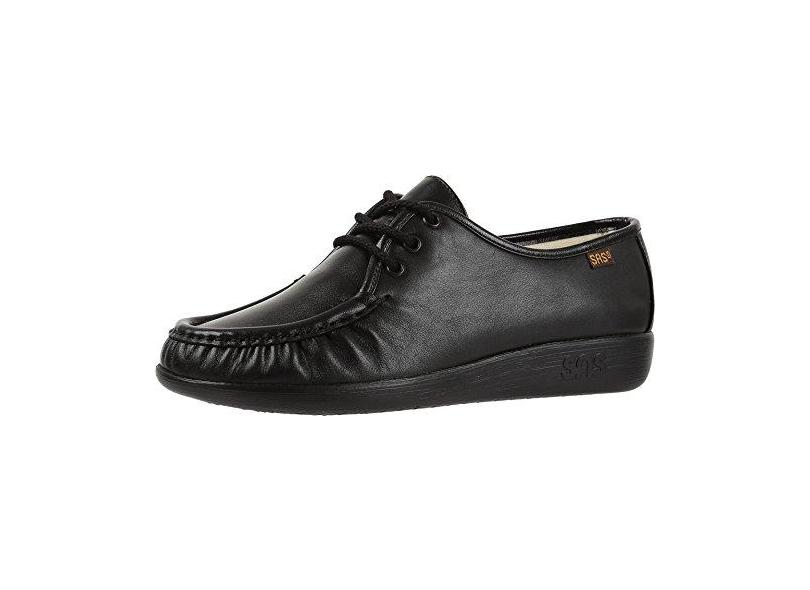 SAS Womens Siesta Leather Low Top Lace Up Fashion Sneakers, Black, Size 9.0