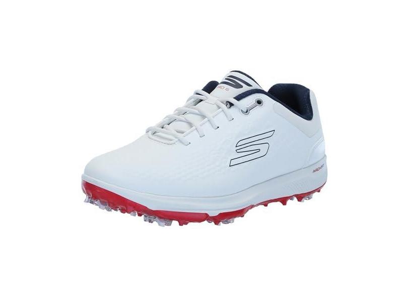 Skechers Tênis masculino Pro 6 impermeável para golfe, Branco/azul marinho/vermelho, 45