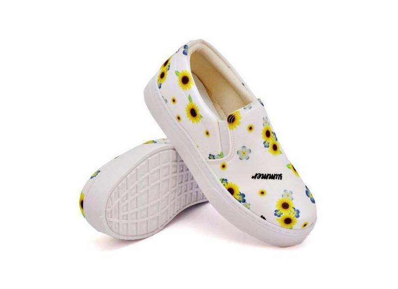 Slip On Tênis Estampas Delicadas Feminino Sola Leve Reta Calce Fácil P