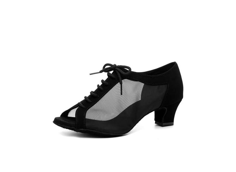 SWDZM Sapatos femininos de dança latina com cadarço salsa tango, tênis para prática de dança, modelo L595, L504 - salto preto, sola de camurça de 5 cm, 34