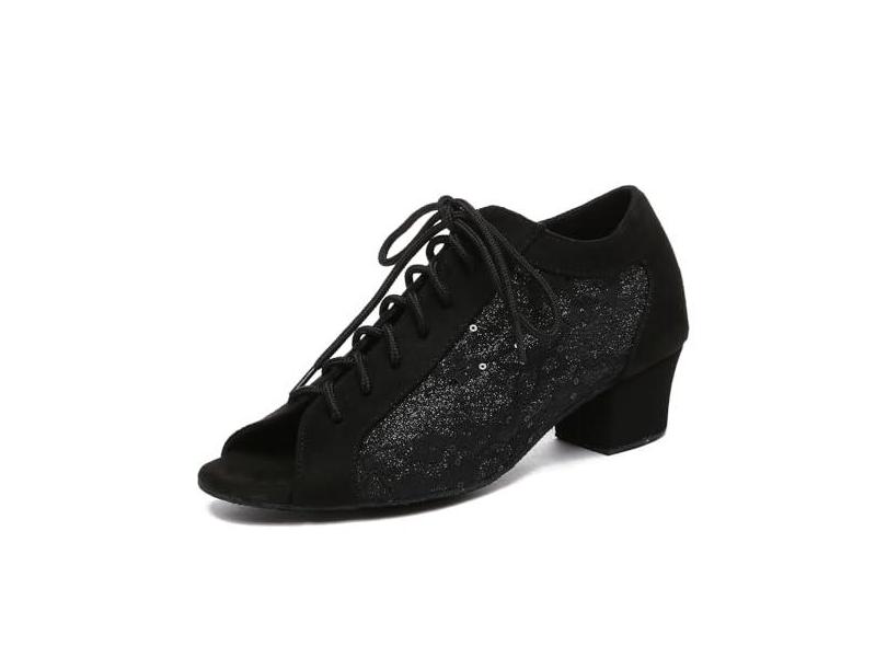 SWDZM Sapatos femininos de dança latina com cadarço salsa tango, tênis para prática de dança, modelo L595, L595-salto preto 3,8 cm - sola de camurça, 36