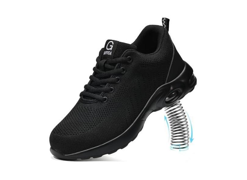 TANIELD Tênis de bico de aço para homens, leves, para trabalho, sapatos de segurança, amortecimento a ar, tênis de aço indestrutível, tênis de construção industrial para trabalho e segurança,
