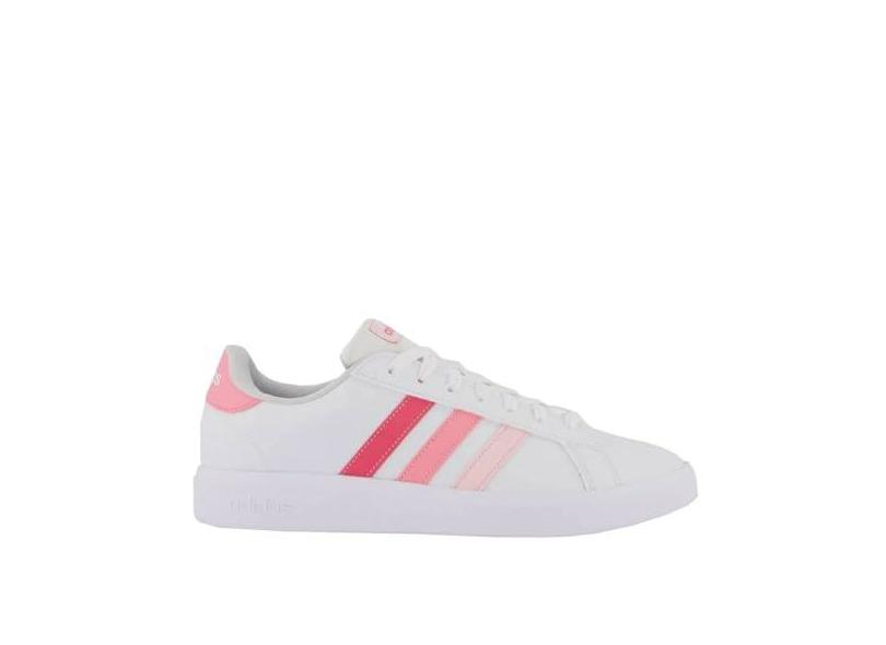 Tênis Adidas Grand Court Base 2.0 Stripes Feminino Branco e Rosa
