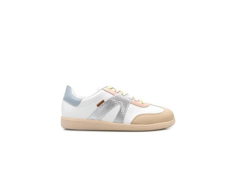 Tenis Anacapri Brilho Lateral Branco e Bege-Feminino