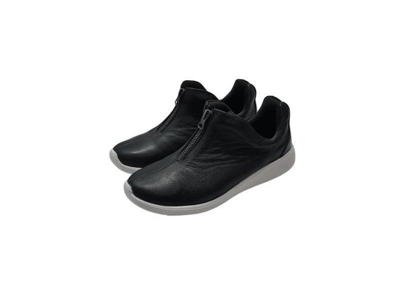 Tênis Ankle Zíper Couro de Carneiro Preto-Feminino