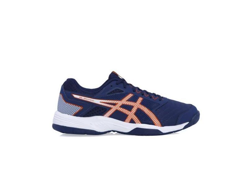 Tênis ASICS GEL-Backhand - Masculino (Azul Marinho com Branco e Laranja, BR, Adulto, Numérico, M, 40)