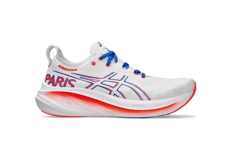 Tênis ASICS GEL-Nimbus 26 Maratona de Paris - Masculino - Branco com Vermelho e Azul-Masculino
