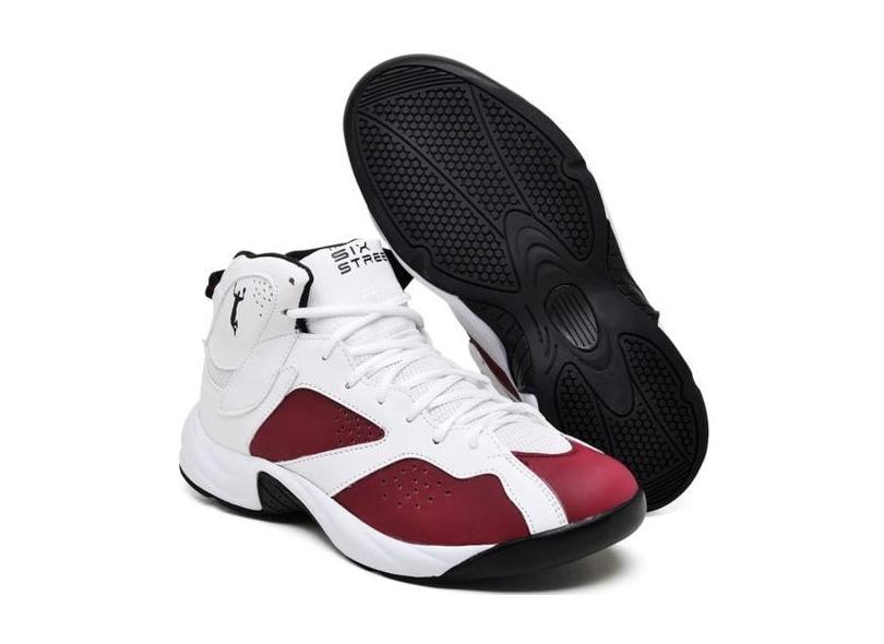 Tênis Basquete Cano Alto Masculino Bordô Branco - Six