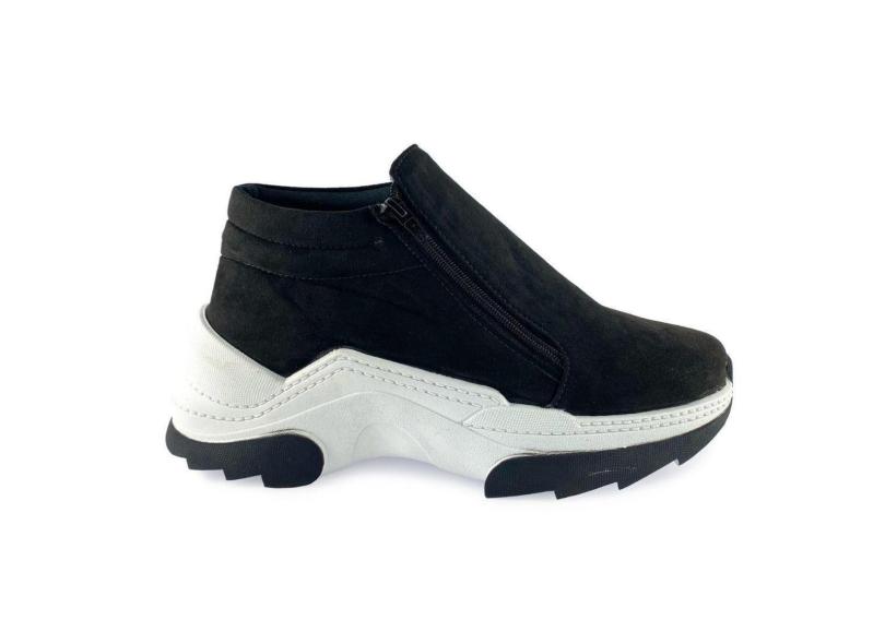 Tênis Bomber Nobuck Preto Detalhe Ziper Frontal - ULLY-Feminino