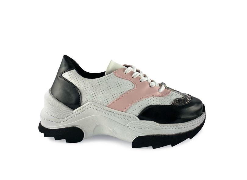 Tênis Bomber Tricolor Preto Branco e Rosa - ULLY-Feminino