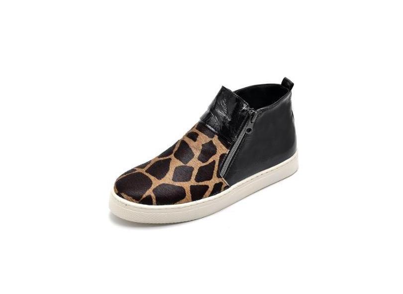 Tenis Botinha Feminino Couro Cano Baixo Hiate Elegante cor Verniz Girafa-Feminino