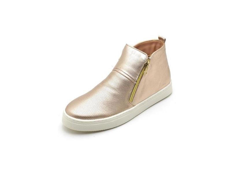 Tenis Botinha Feminino Couro Cano Baixo Hiate Elegante cor World Rose-Feminino