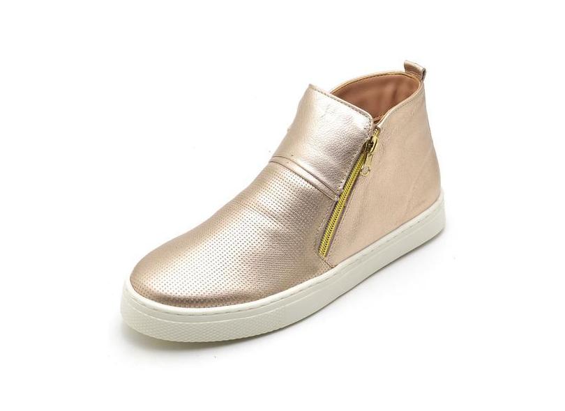 Tenis Botinha Feminino Couro Cano Baixo Hiate Elegante Cor World Rose