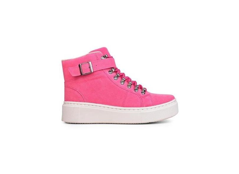 Tênis Botinha Feminino Rosa Solado Alto Fivela Cano Médio-Feminino