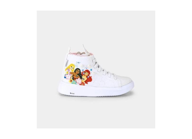 Tênis Botinha Infantil BIBI Glam Princesas Disney Feminino, Branco, 30