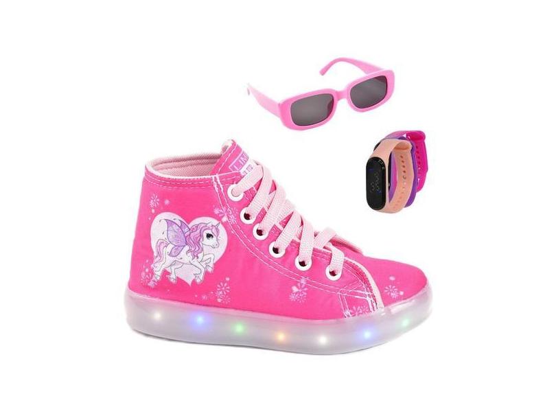 O menor preço encontrado no Brasil para Tênis Botinha Infantil Feminino De Led Unicórnio Cano Alto +Óculos+Rel atualmente é R$ 74,99.