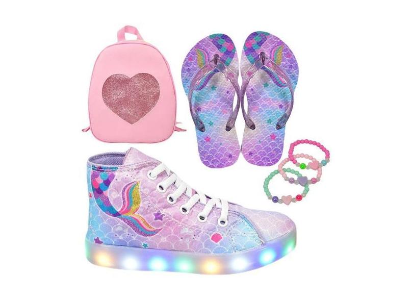 Tênis Botinha Infantil Led Feminino Sereia Casual +Mochila+Pulseira+Ch