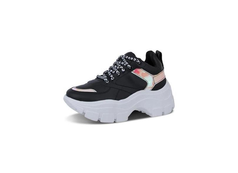 Tênis Bufalo Feminino Sola Alta Plataforma Recortes Metalizados-Feminino