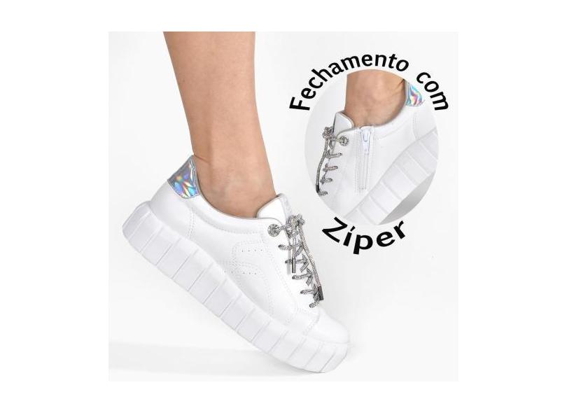 Tênis Cadarço Strass Branco Via Marte - 23-10910