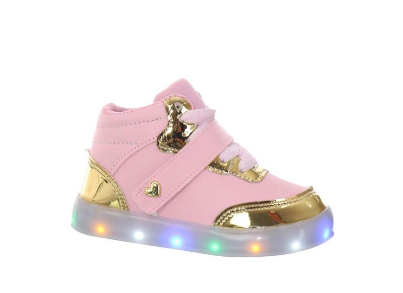 Tenis calçado botinha rosa infantil menina led luz pisca-Feminino