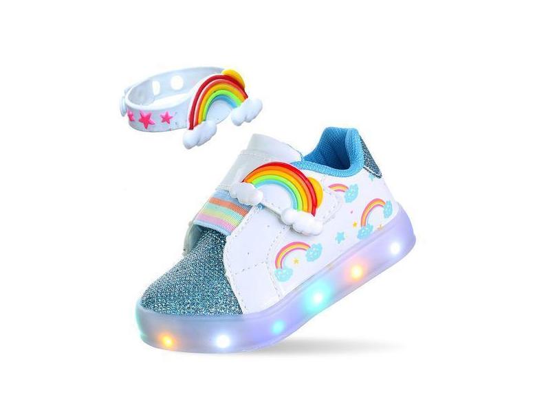 Tenis Calçado Led Luz Arco Iris Nuvem Infantil Menina Com Pulseira - P
