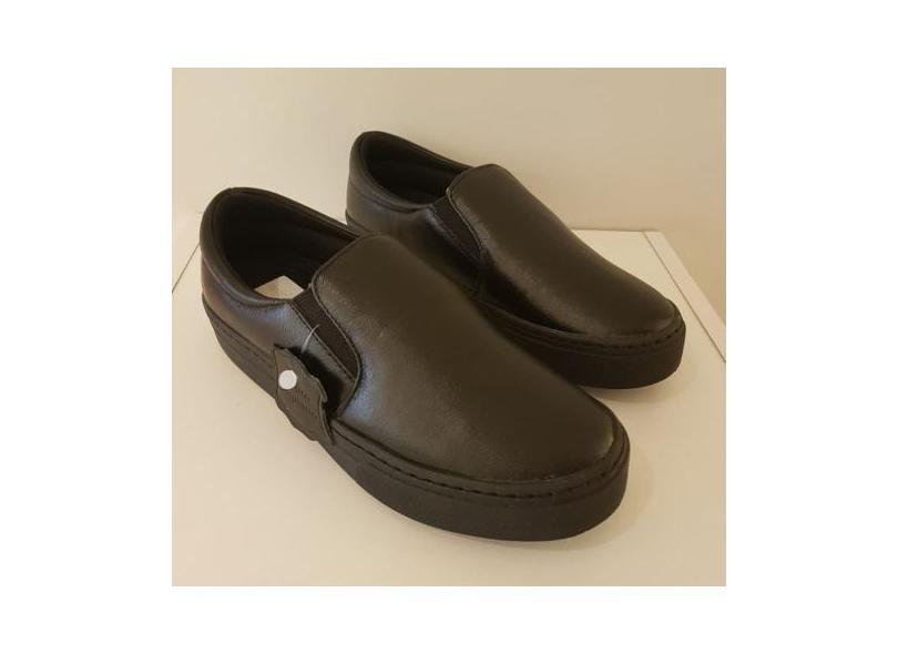 Tênis Camila Reis Couro Slip On C/ Elástico Preto 1200