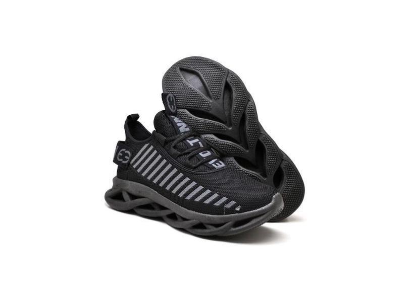 Tênis Caminhada Conforto Leve Sola Trançada Unissex Black-Unissex