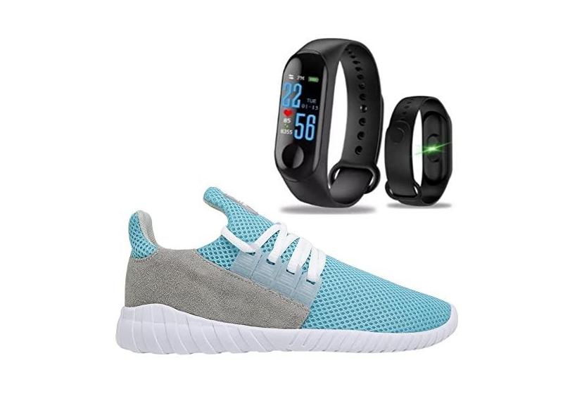 Tênis Caminhada Corrida Leve Macio Confortável Fitness Academia + Pulseira Inteligente M3 - Azul - 37